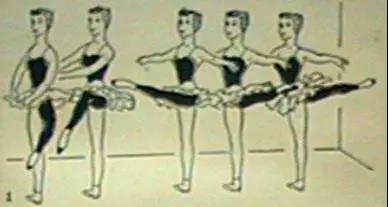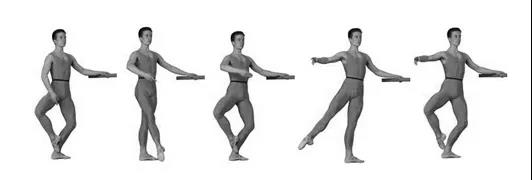 舞蹈動作要點(diǎn): 支撐腿下沉的同時,活動腳腳尖到達(dá)支撐腿足踝的前面或后面。