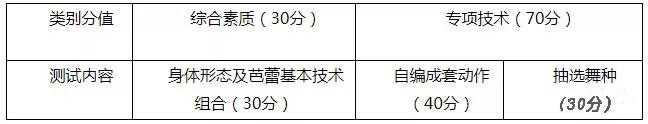 評定標準:1、自編成套動作40分主項拉丁舞的考生要在拉丁舞(倫巴舞、恰恰舞、牛仔舞)中隨機抽取一支舞蹈,主項為標準舞的考生要在標準舞(華爾茲舞、探戈舞、快步舞)中隨機抽取一支舞蹈。