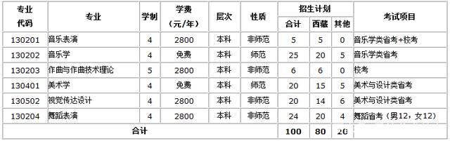 報考美術學、視覺傳達設計專業的考生按照2020年西藏自治區美術與設計類類省級統考成績從高分到低分排隊依次錄取;報考音樂學、舞蹈表演專業的考生按照2020年西藏自治區音樂類、舞蹈類省級統考復試成績從高分到低分排隊依次錄取,錄滿為止。