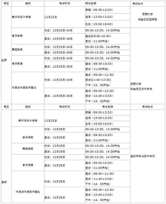 2020年我校藝術類招生專業加試設拉薩、昌都兩個報考點。具體如下: