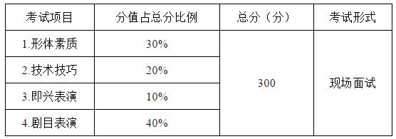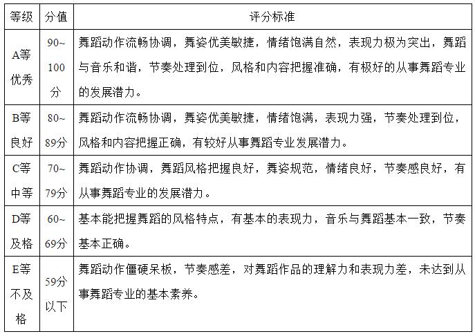 3.考生舞蹈類省級統考的總成績=(形體素質成績×30%+技術技巧成績×20%+劇目表演成績×40%+即興表演成績×10%)×3,四舍五入取整數計分。