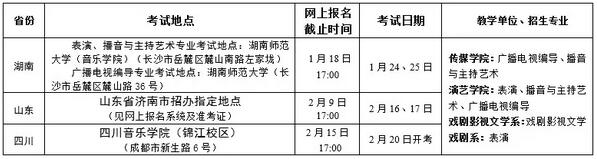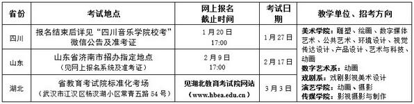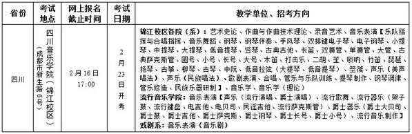 注意:影視攝影與制作和攝影專業(yè)只在四川音樂學院(錦江校區(qū))考點組織招生專業(yè)考試(網上報名截止時間:2月15日17:00;開考時間:2月20日)。