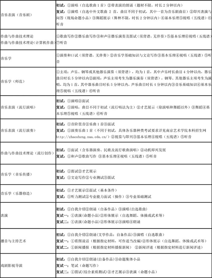③報考音樂表演(聲樂演唱、中國樂器演奏、管弦與打擊樂器演奏、鋼琴與鍵盤樂器演奏、音樂劇、流行演唱、流行演奏)、作曲與作曲技術(shù)理論、作曲與作曲技術(shù)理論(計算機作曲、流行創(chuàng)作)、音樂學(xué)、音樂學(xué)(師范)、音樂學(xué)(音樂傳播、樂器修造)專業(yè)的江蘇省考生,均須參加音樂專業(yè)省統(tǒng)考,且成績須合格,否則,上述專業(yè)校考成績無效。