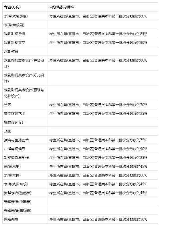 按照教育部關于獨立設置藝術院校招生相關規定,我校根據各專業(方向)校考合格人數、招生計劃 數,自主劃定本科最低錄取分數線。校考合格且高考文化成績達到我校自主劃定的本科最低錄取分數線(有 單科要求的須達到單科分數線)的考生,分別按以下辦法從高分到低分依次擇優錄取: