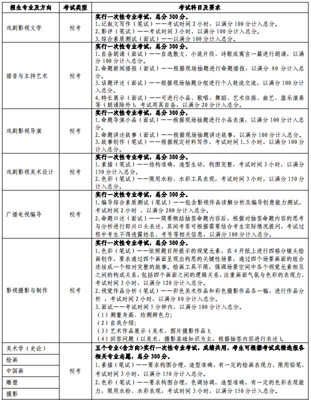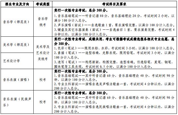 注:1.所有報考音樂類校考的考生在參加專業主科面試時應著淡妝、不穿高跟鞋、不穿演出服。