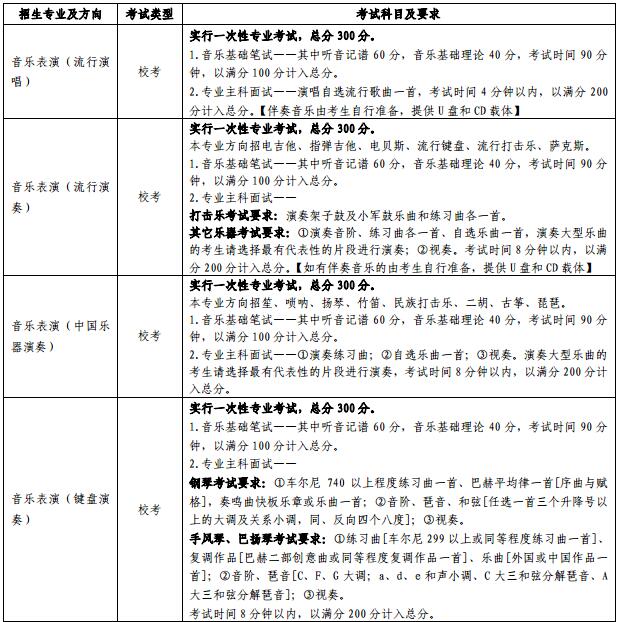 2.音樂學(民族音樂理論)及音樂表演所有專業方向的“音樂基礎筆試”科目實行一次性考試,成績通用。